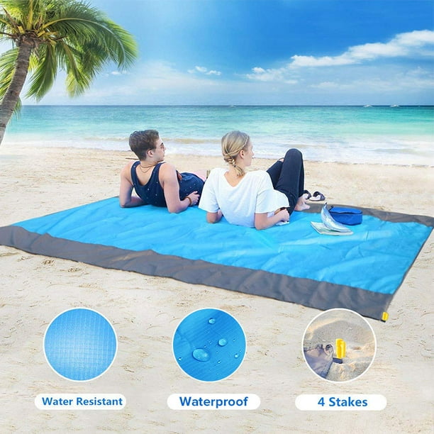 YOYI YOYI Sandproof Beach Blanket - Oversized for 2-7 Adults Pocket Waterproof Picnic Blanket Lightweight Sand Free Beach Mat for Travel, Camping, ...