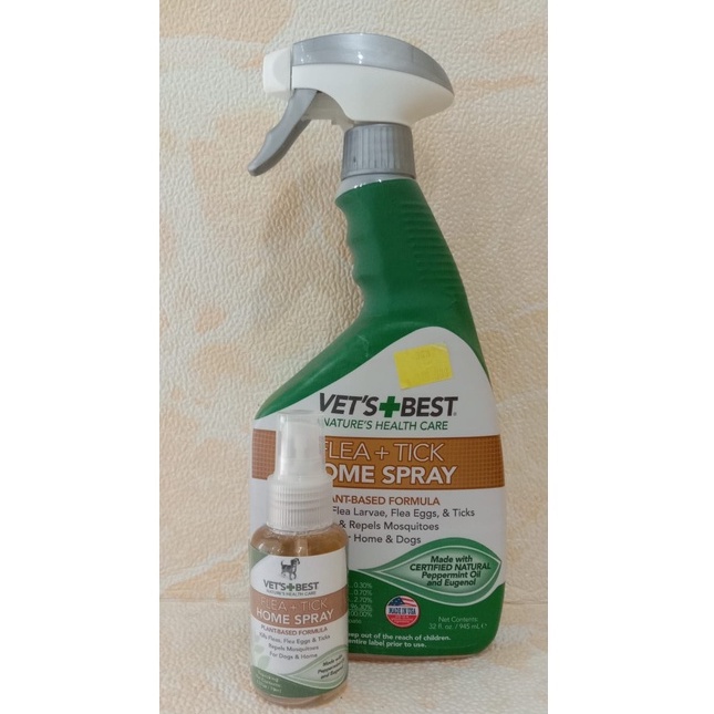 Flea spray for dogs and home | Vet's Best Protect your home and your pup with our #1 selling Home Spray for Dogs. Our highly effective formula kills fleas, flea eggs and ticks by contact using certified natural essential oils. Kills fleas, flea eggs and ticks by contact Safe to use around pets and home, or on dogs and puppies 12 weeks or older when used as directed