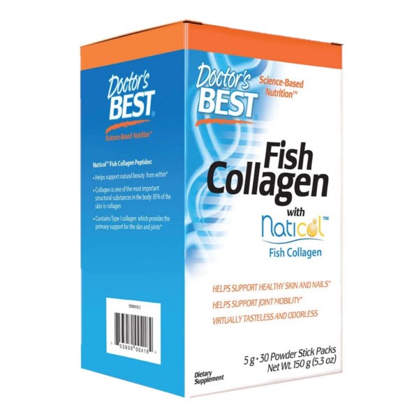 Doctor's Best Fish Collagen w/Naticol Fish Collagen, Supports Skin, Nails, Joints, 30 Powder Stick Pack